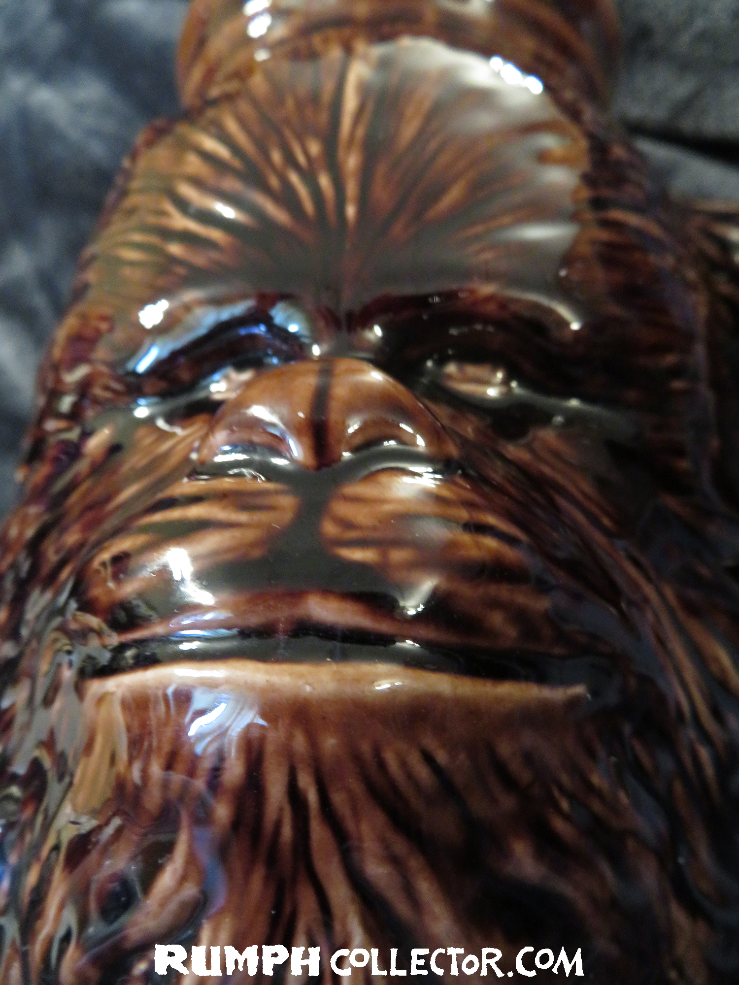 Way too high gloss for a normal Rumph Chewbacca. Also, the wording on the bottom is different, mainly leaving off Calif. Originals. I would guess because it wasn't finalized who was producing them when this one was made.
