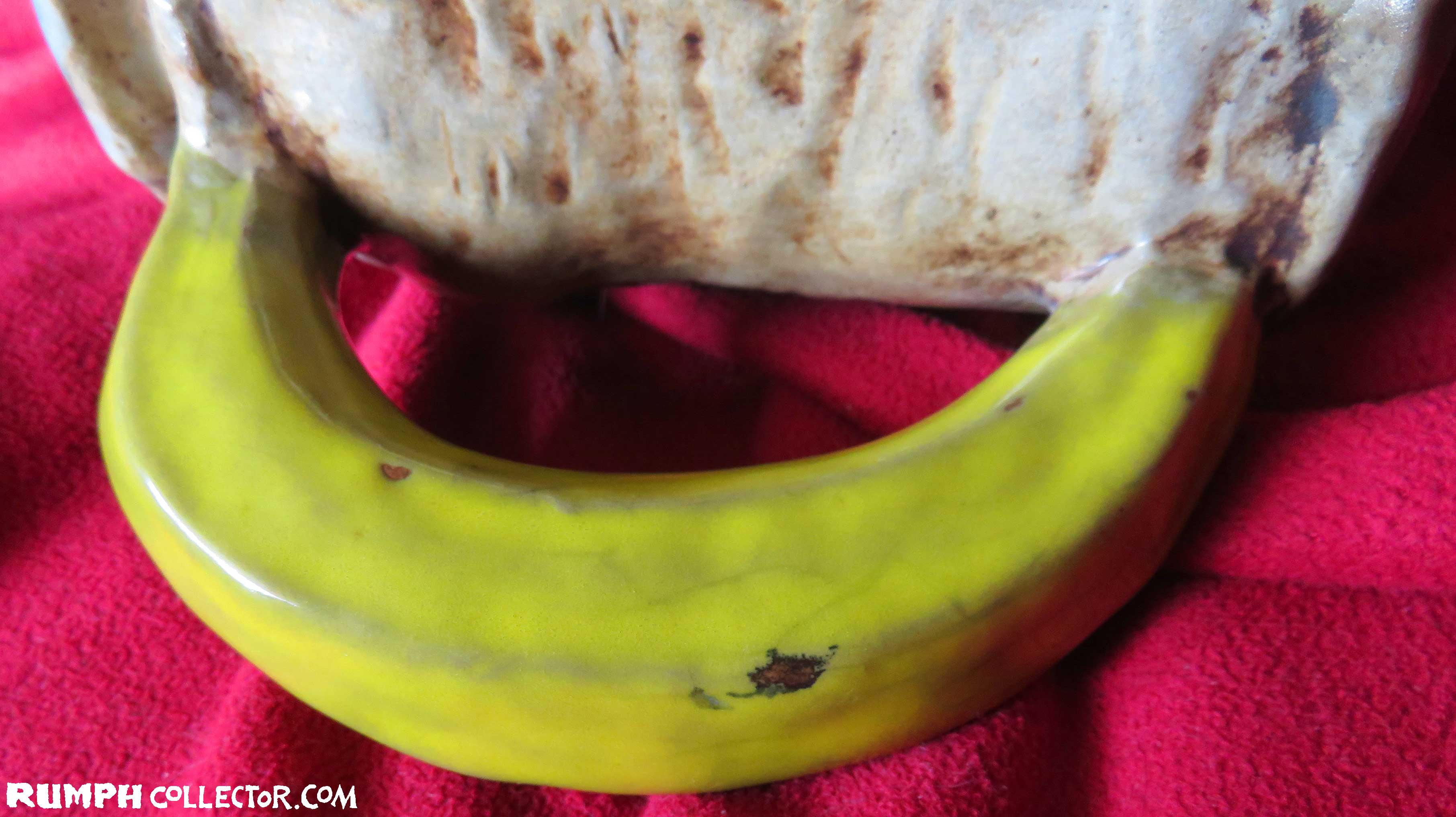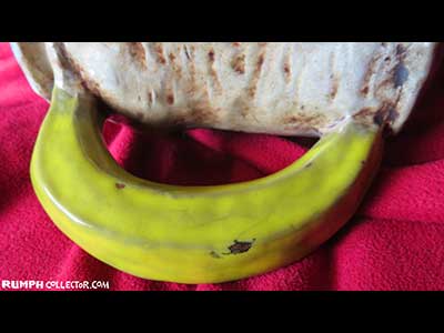 I know it's a defect in the glaze, but the black bit makes it look more like a real bananna!
